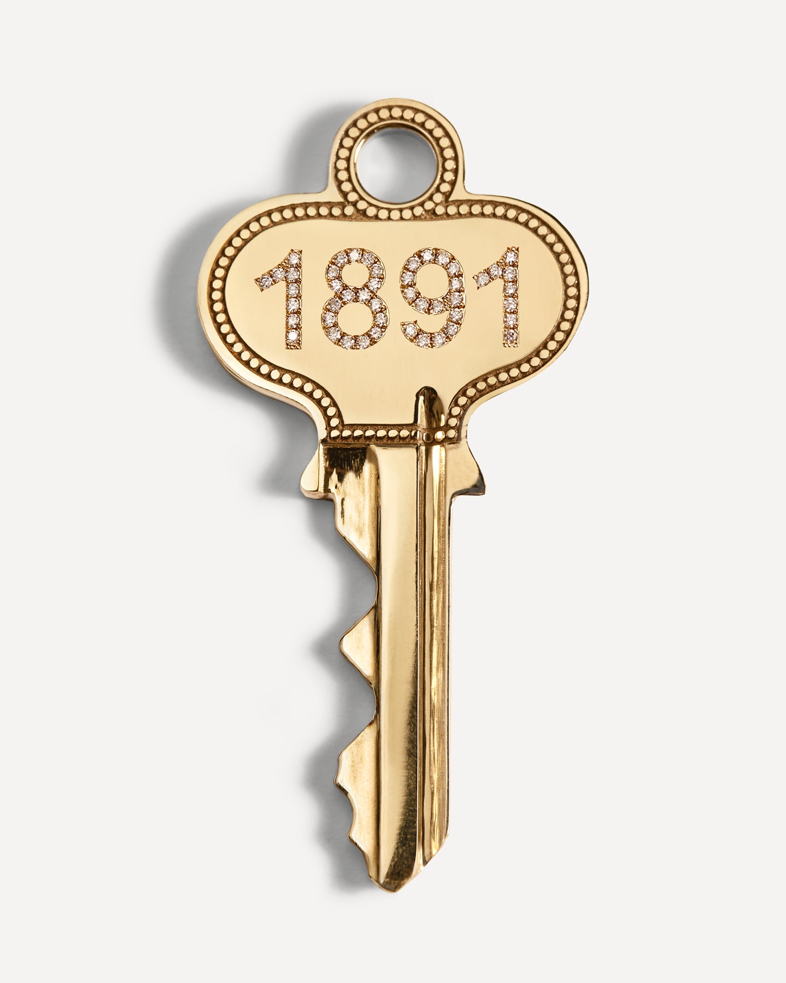 Our keys are solid 14 karat gold throughout with a semi polished finish. Modeled after a vintage house key, our keys are the same measurements and thickness of an actual key. The weight of the gold combined with the intricate and meaningful design of each key gives them an extraordinary feeling to wear. Each one is a stunning one-of-a-kind treasure and heirloom.