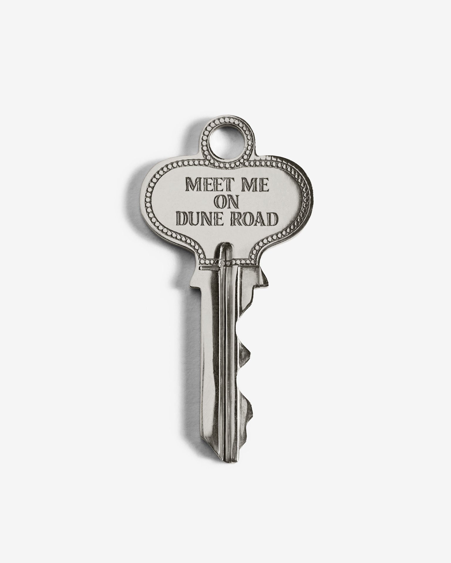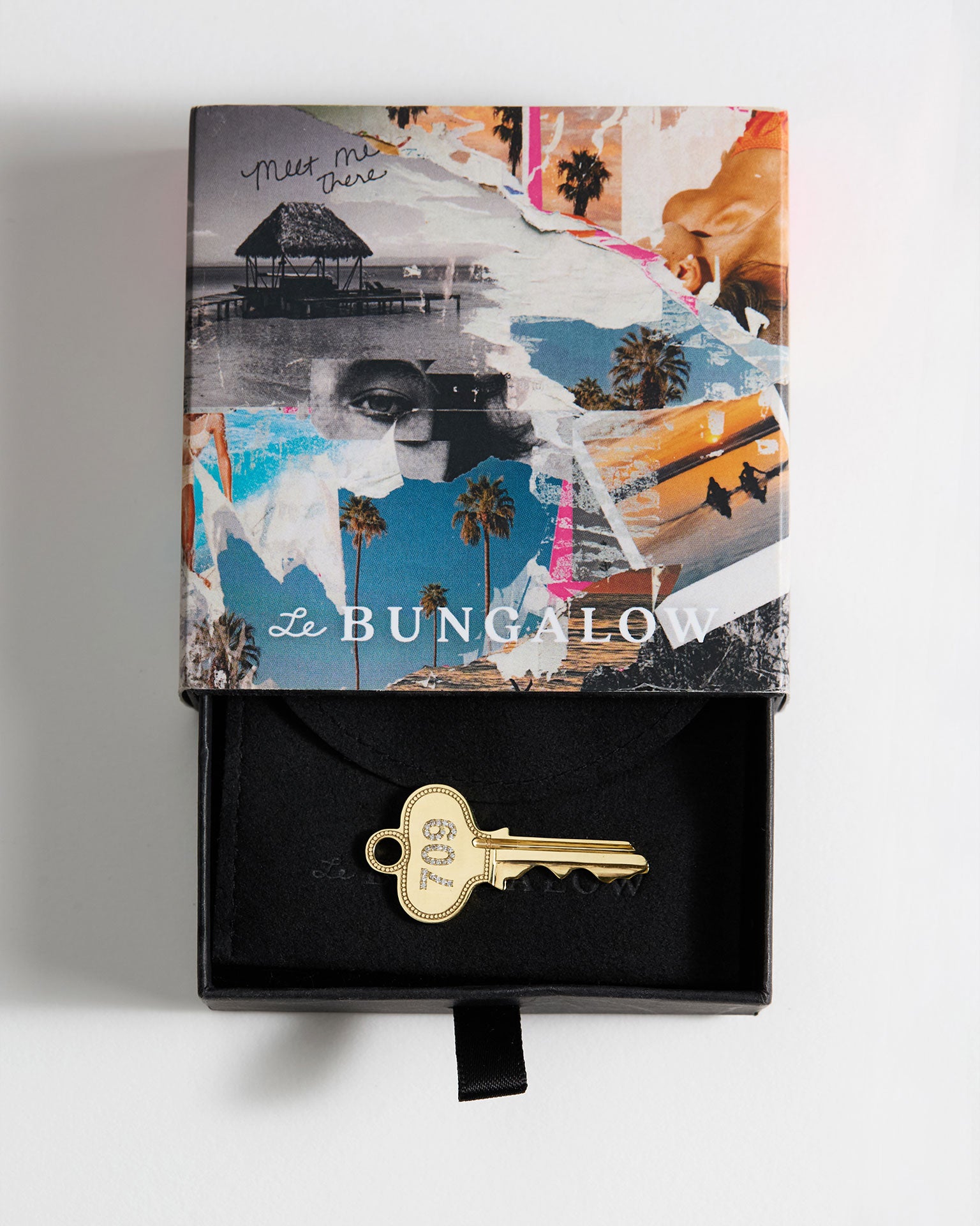 The back of each key is engraved with “Meet Me” at the top and your customized destination below.